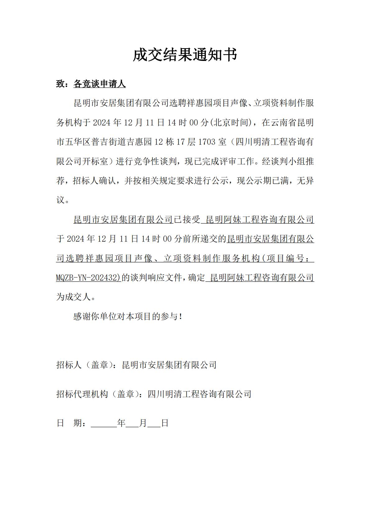 昆明市安居集团有限公司选聘2025年~2026年度商业(包含...